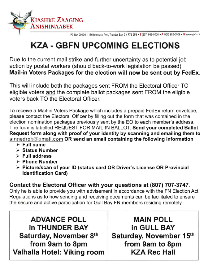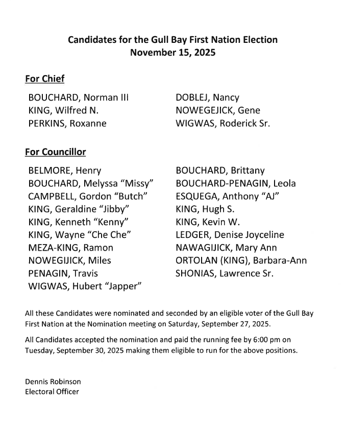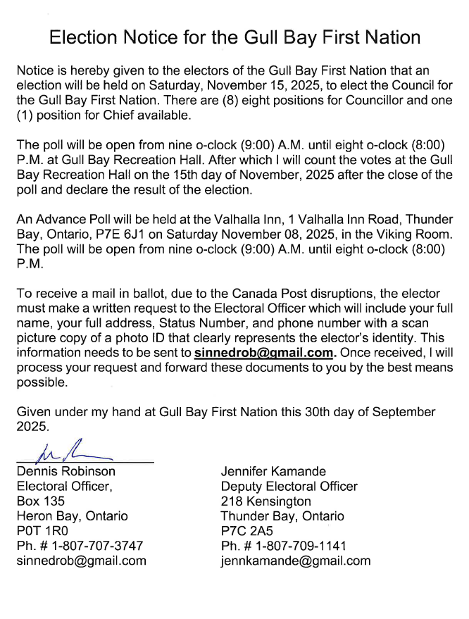 Elections Notice for the Gull Bay First Nation